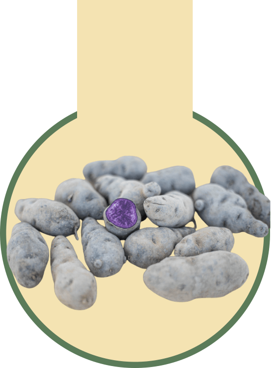 La patata violeta debe su color a unas sustancias llamadas antocianinas. Estas antocianinas también las encuentras en otras frutas y verduras violetas, como las moras o los arándanos. Tienen un alto contenido en antioxidantes, lo que hace de estas patatas un buen alimento para mejorar el sistema inmunológico.